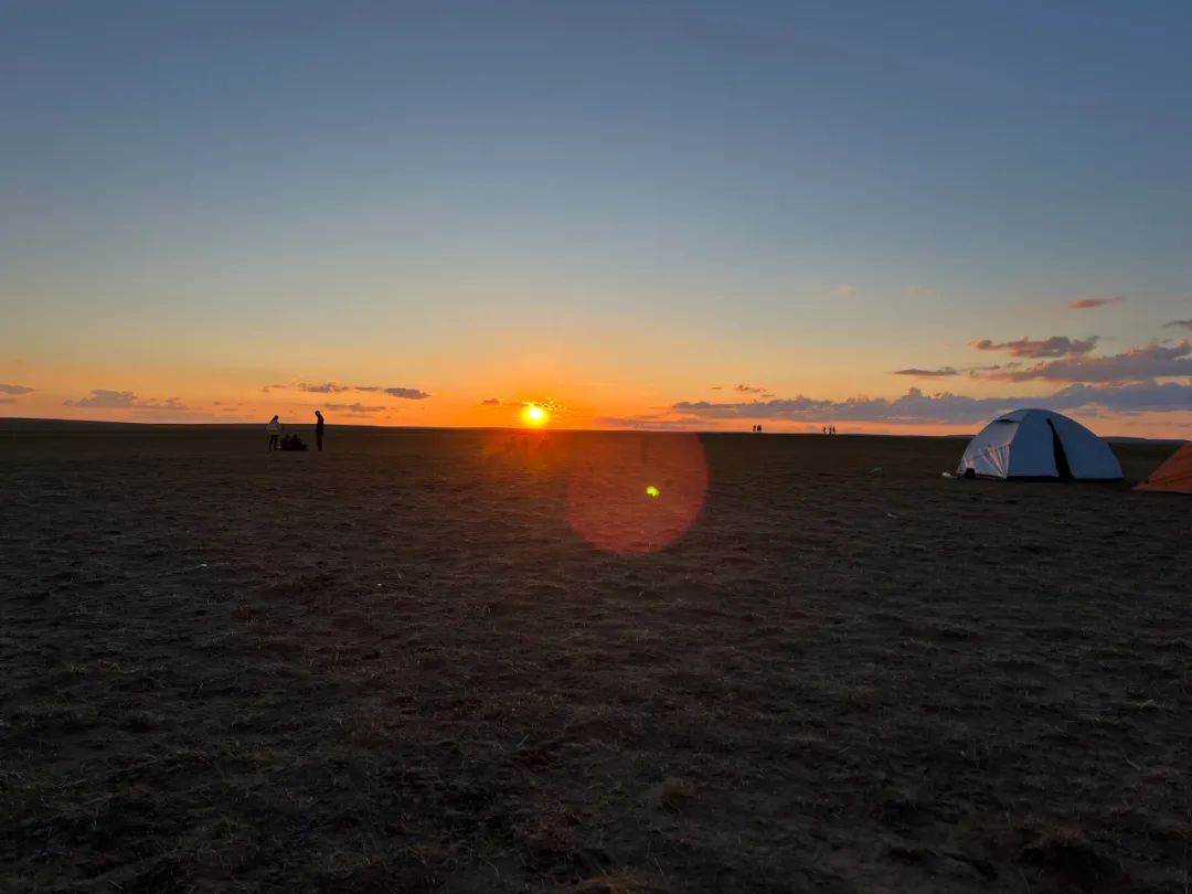 吃过晚饭,正遇晚霞。一望无际的草原,伴随绚丽多彩的天空,地平线处,大放光明,充满生命的希望。