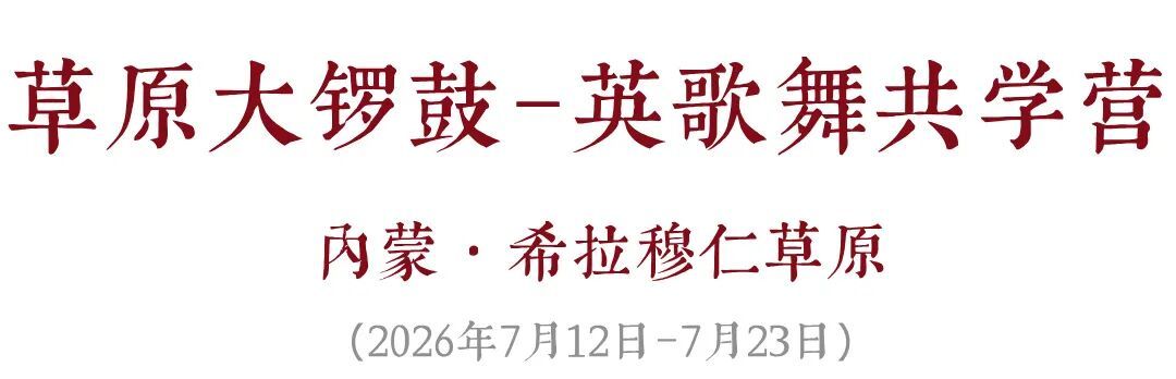 2026年7月,我们将在希拉穆仁草原再次开展【草原大锣鼓-英歌舞共学营】,欢迎广大青少年和成人们积极参与!既体验潮州大锣鼓的千军万马之势,又跳出英歌舞的刚健豪迈之姿!尽情鼓之、舞之,找到久违的生命力,体会徜徉天地间的开阔和自在。