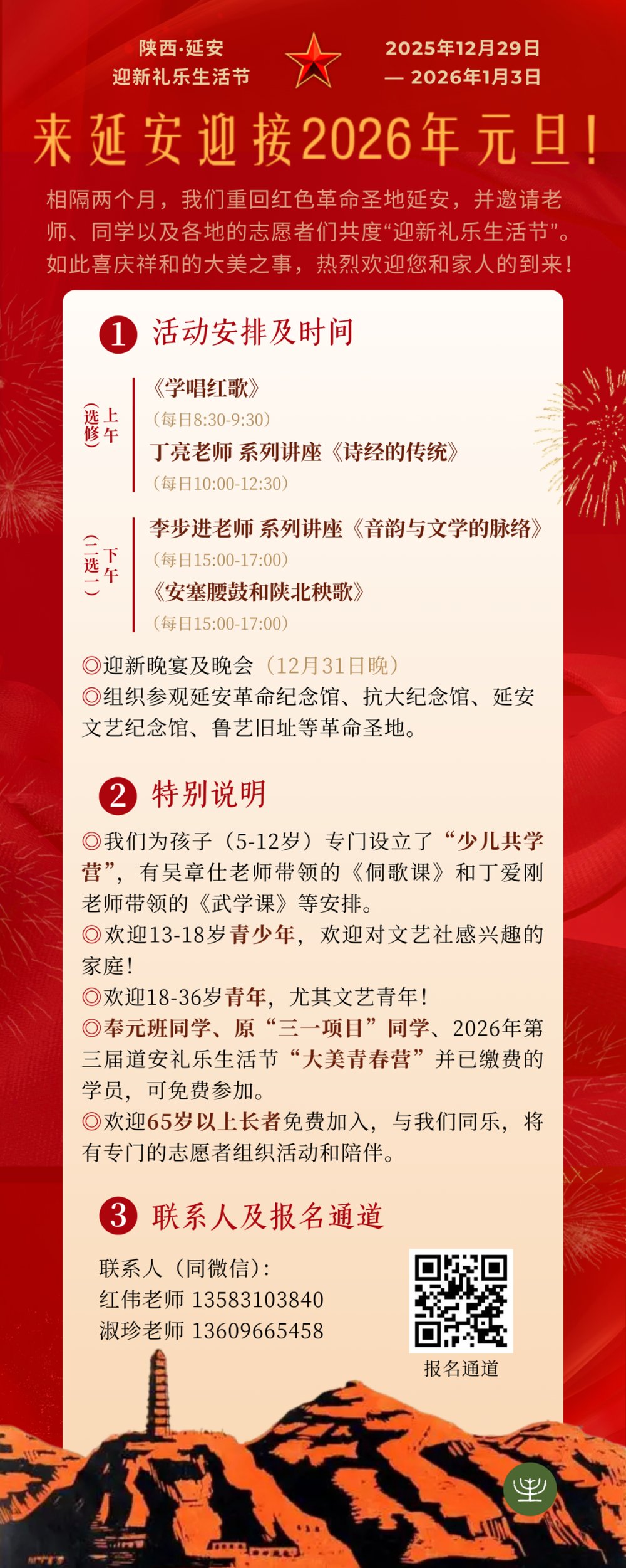 – 2026年第三届道安礼乐生活节“大美青春营”并已缴费的学员,不用另外交学费