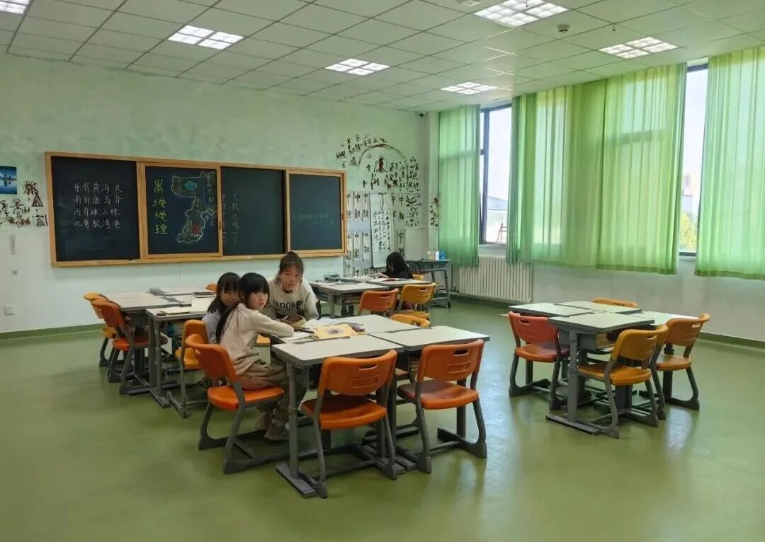 海军学校的创新部,是由当地华德福团体的一部分组成的。校园很大,设施齐全,目前由一家民营教育集团在经营。校方很开明,愿意团结新教育的力量,做教育的创新尝试。而牵线人刘兴菊老师是一位很有德行的幼儿园园长,我们在食堂餐厅用午餐时,不少孩子过来亲昵地抱着她,小声问,怎么来这么多客人啊?