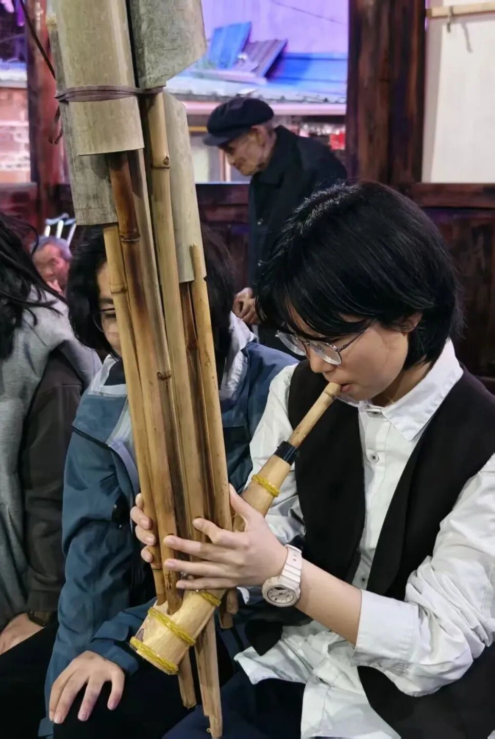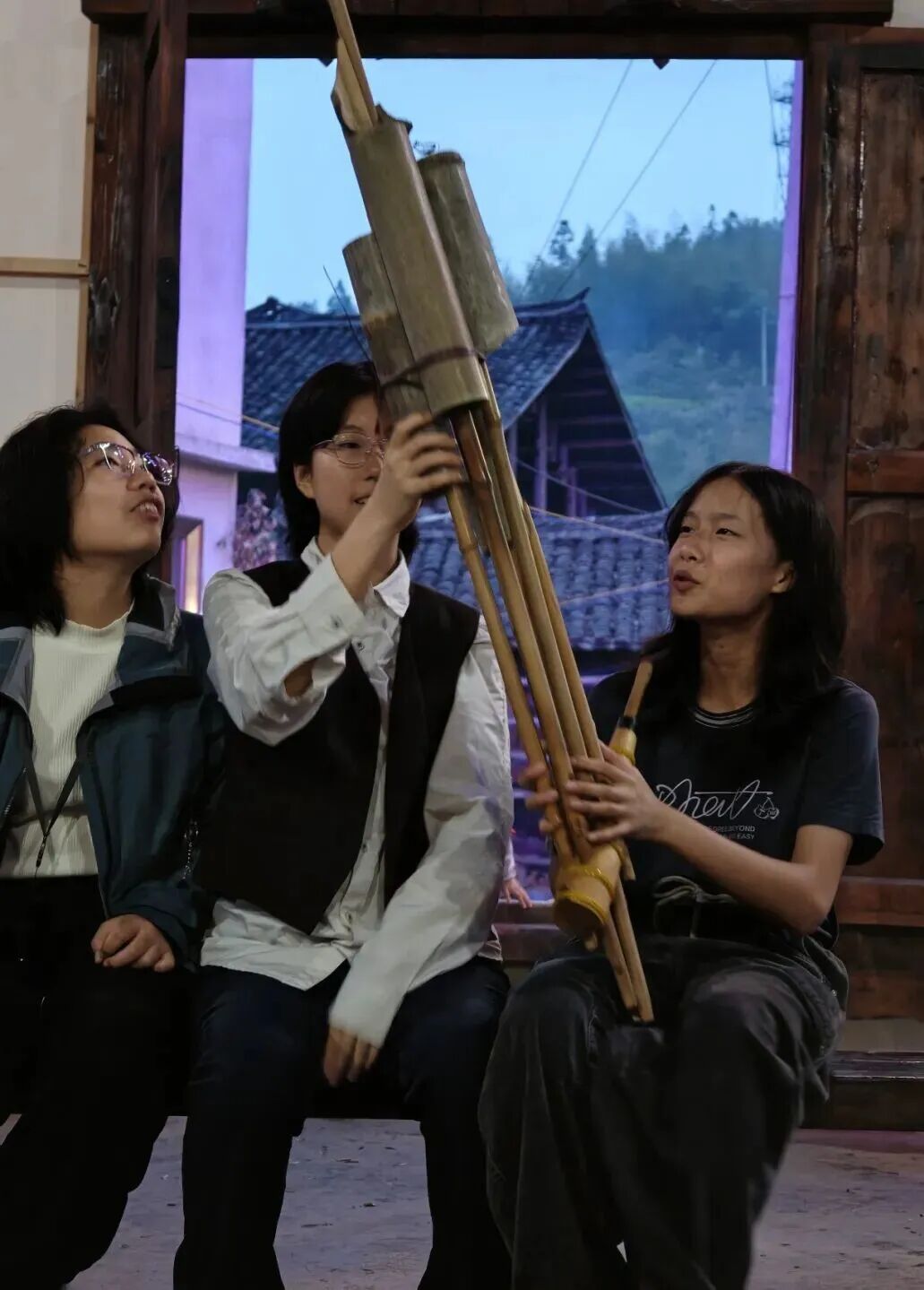 地扪小分队的孩子们在吹芦笙