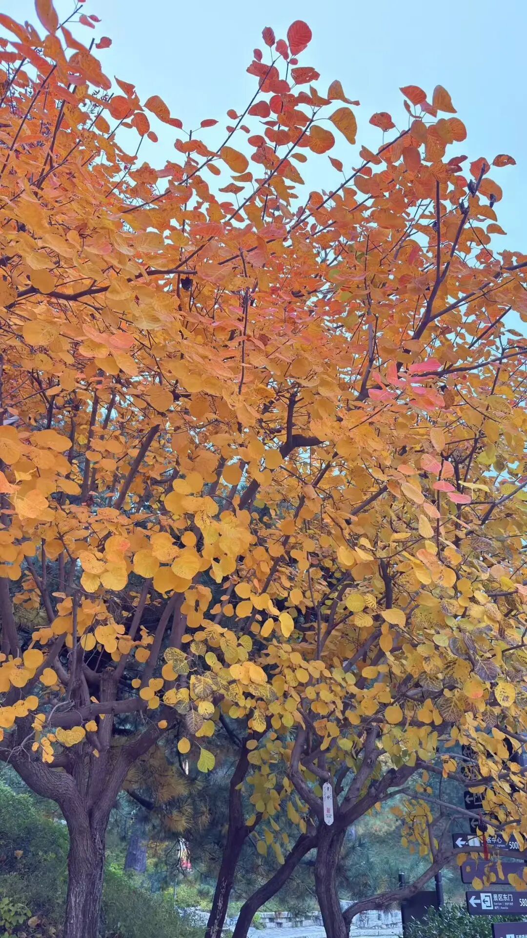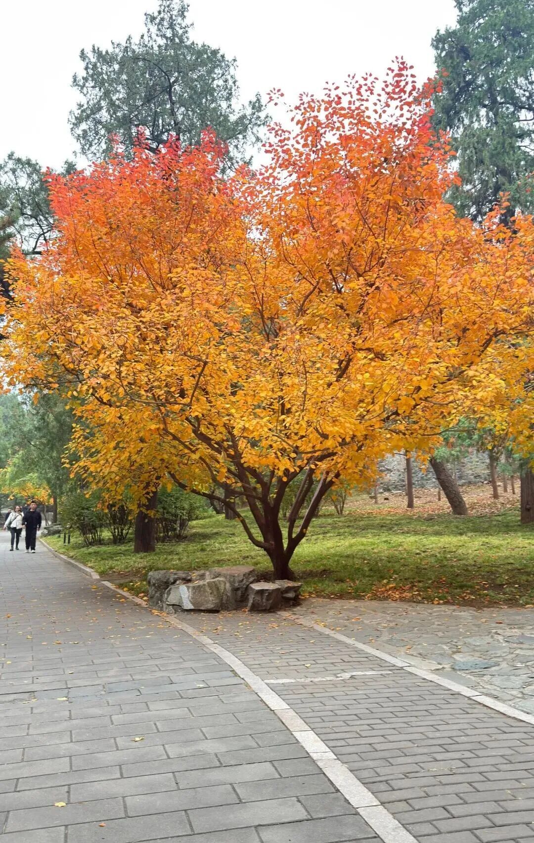 下午攀登了香山,刚开始爬时还好,后面有一段台阶,巨陡无比,得抓着把手才敢上,很容易踩空。不过,树叶是难得一见的风景,一棵棵树上枝繁叶茂,像一朵巨大的花,叶子颜色是渐变的。希望下回能再登香山,看琉璃塔。