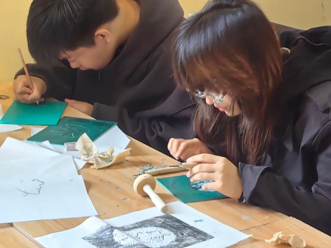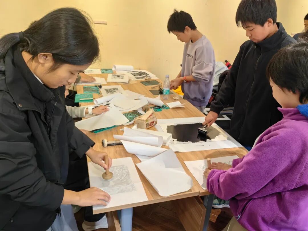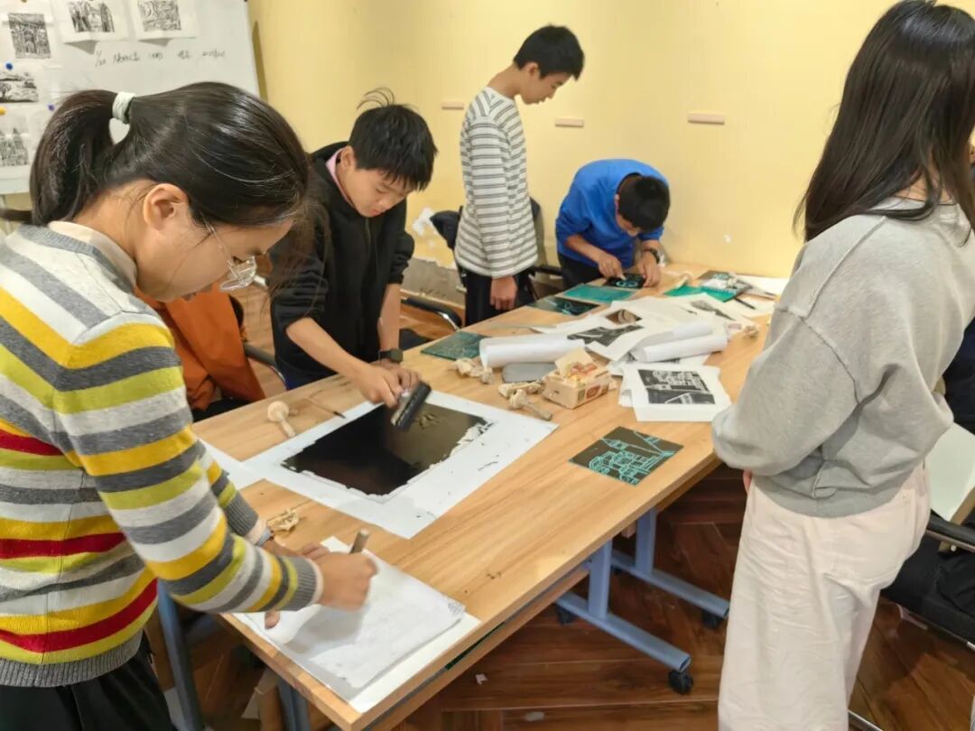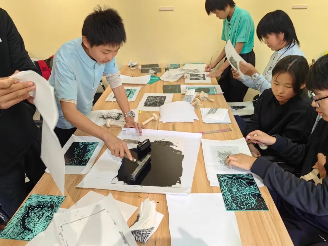 版画的拓印课上,每位同学都好厉害,都是艺术家,可比我强多了。