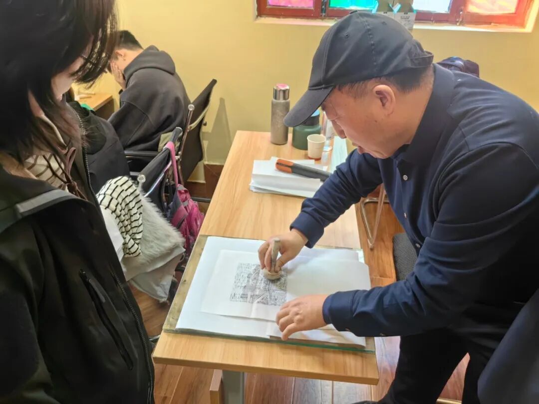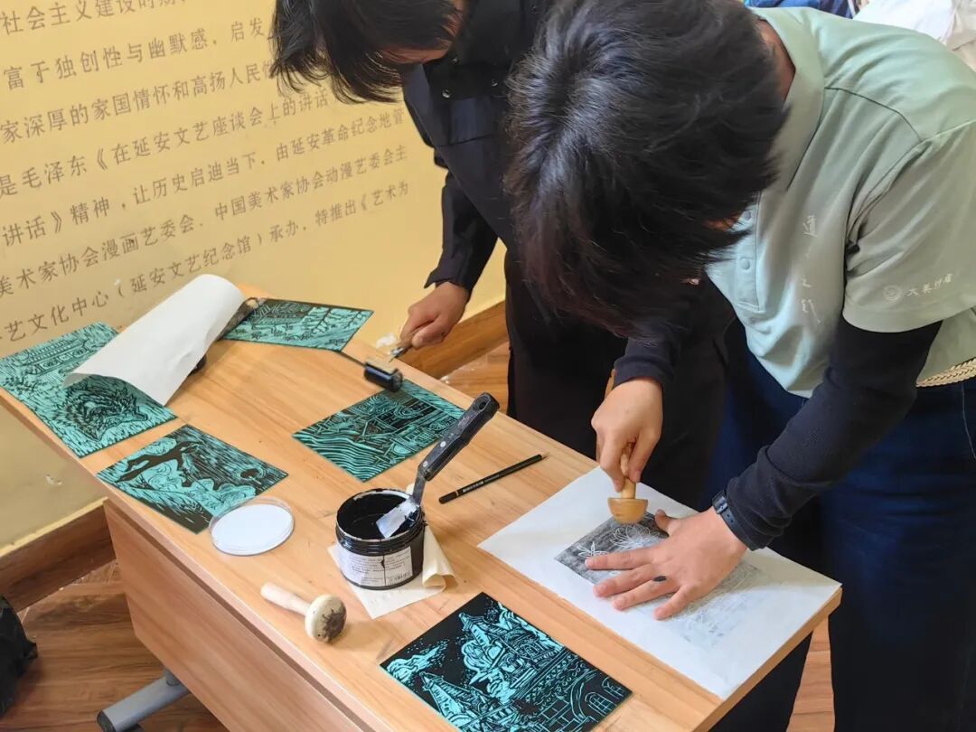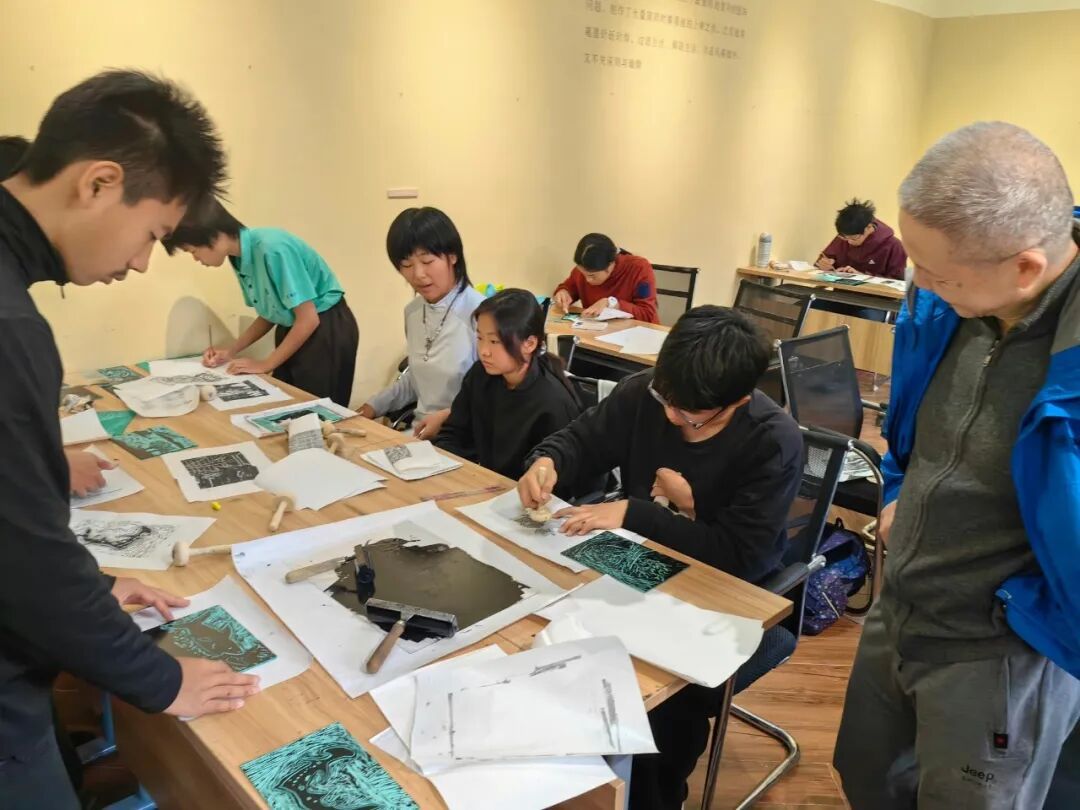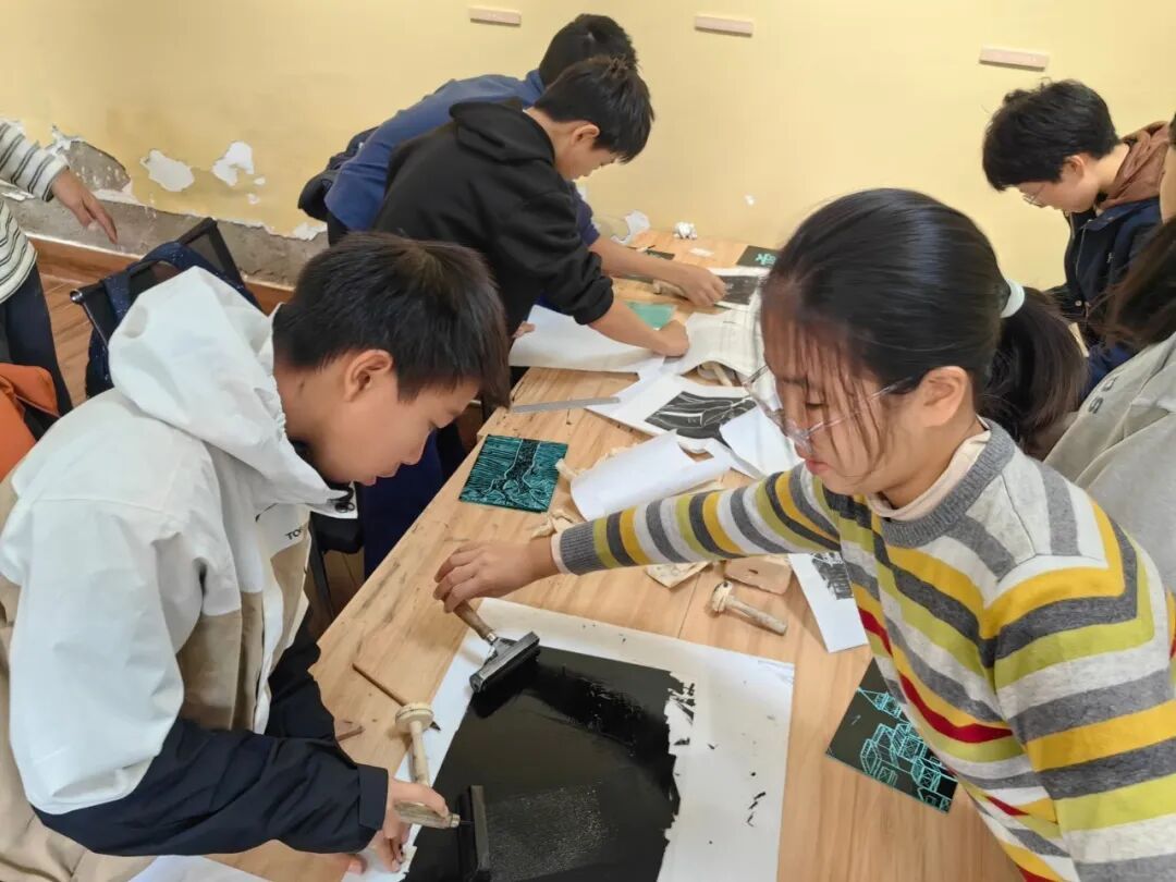 版画的拓印课上,每位同学都好厉害,都是艺术家,可比我强多了。