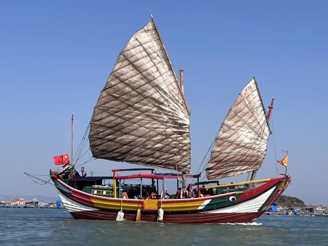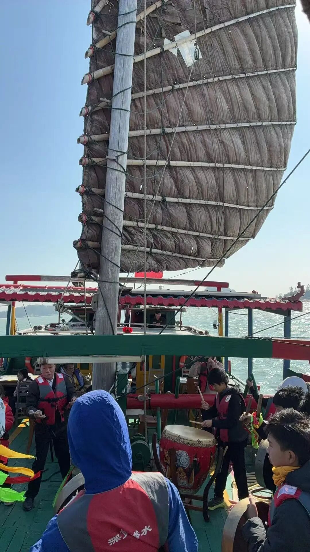 我选的是古帆船,所以一大早就去了码头。这艘古帆船并不是用电驱动的,而是用风驱动。船长跟我们讲,这艘船造了六年,他感叹:“我再守护十年,就在船上住着了,不再造船了。”不得不感叹,这些船民在茫茫大海上,为什么不会恐惧,为什么不会慌张?因为船就是他们的家,大海就是他们的家。