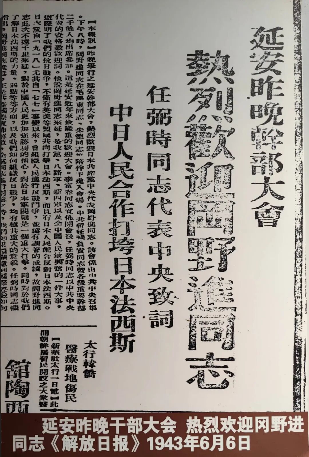 我们十四个人当中,除了小林、后藤、阿部、石田四同志外,全部是百团大战时过来的。……只用下等武器作战的八路军,能够战胜日军吗?和吃鸟食(小米、玉米、豆子等)的八路军,能够一块生活吗?中国话的研究也开始了,从“我”“你”“他”起……我们更不能忘记的是,来延的这天,恰是苏德战争爆发的一天。