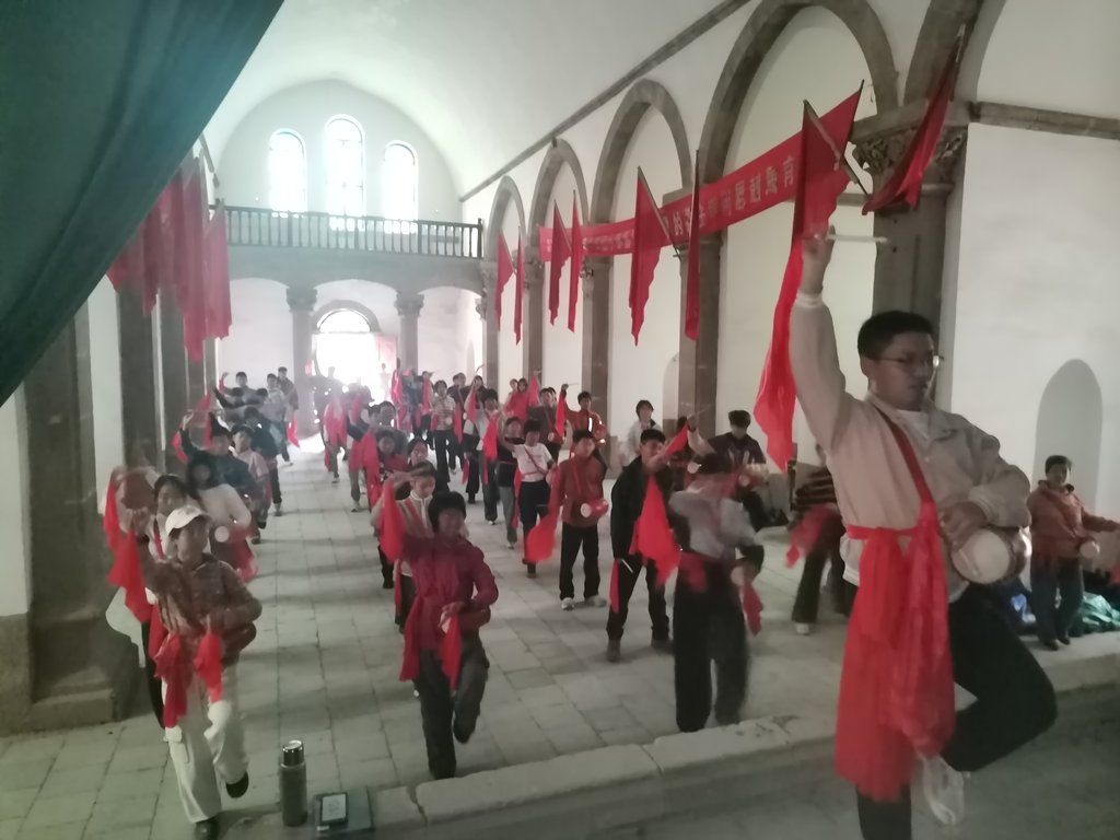 看完电影,想到我们也在教堂中打腰鼓,不由想到历史缘分真奇妙,伟人就在我们身边啊!