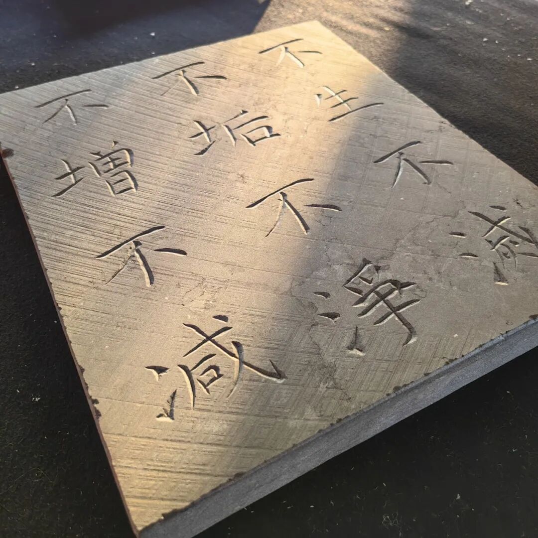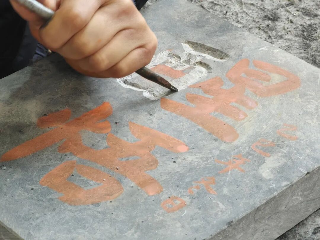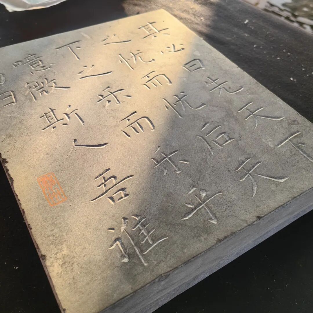 昨天下午的《碑刻与拓印课》,我开始刻第三块石板,请李继伟老师写了两行字“让文艺点亮心灵”。