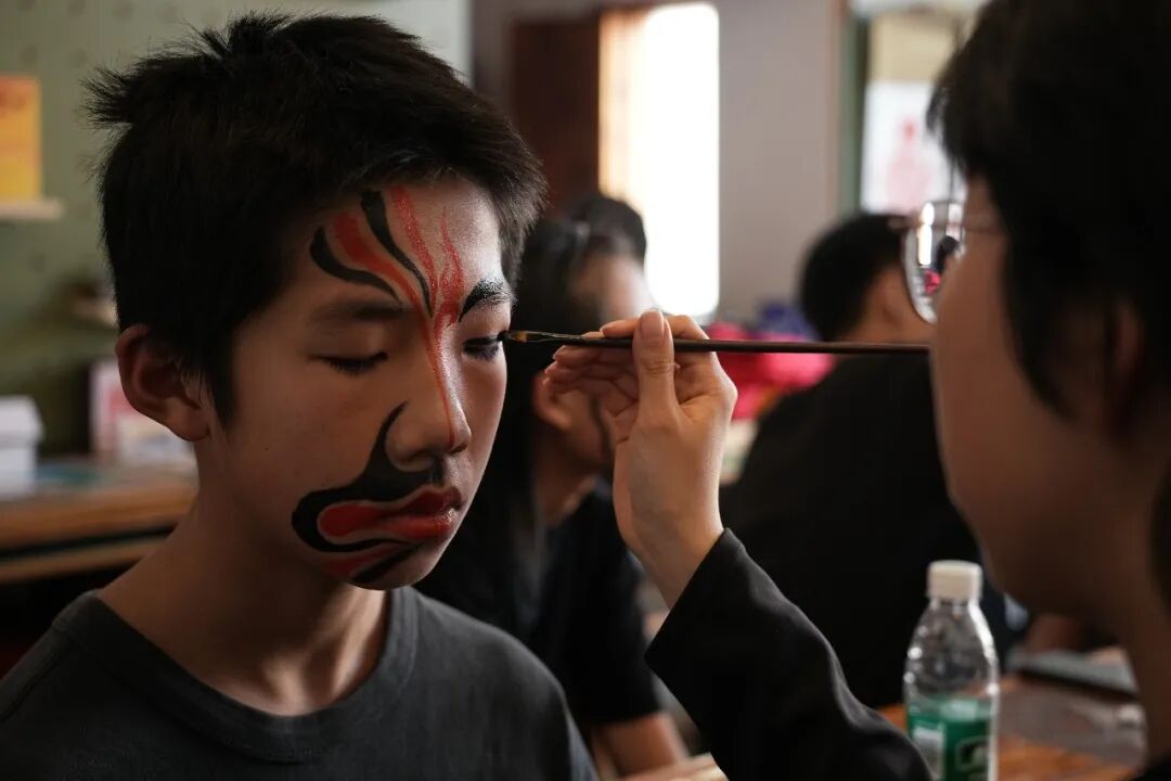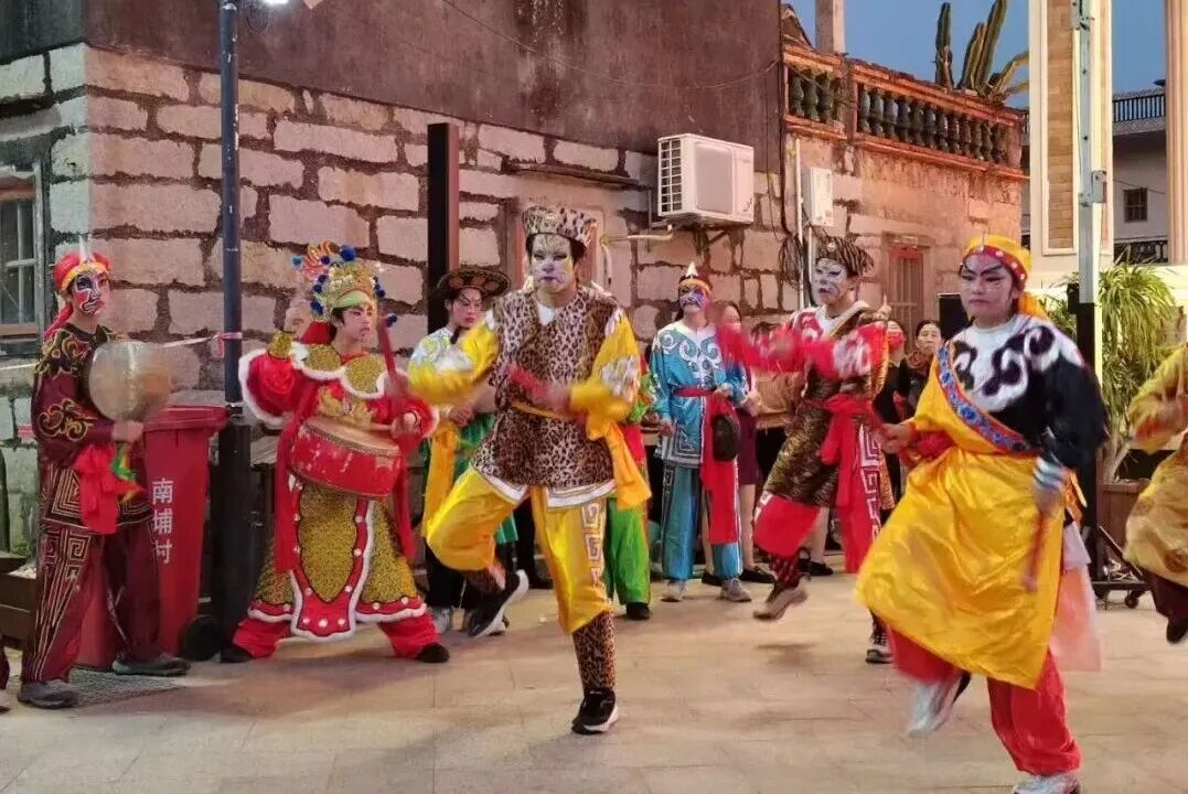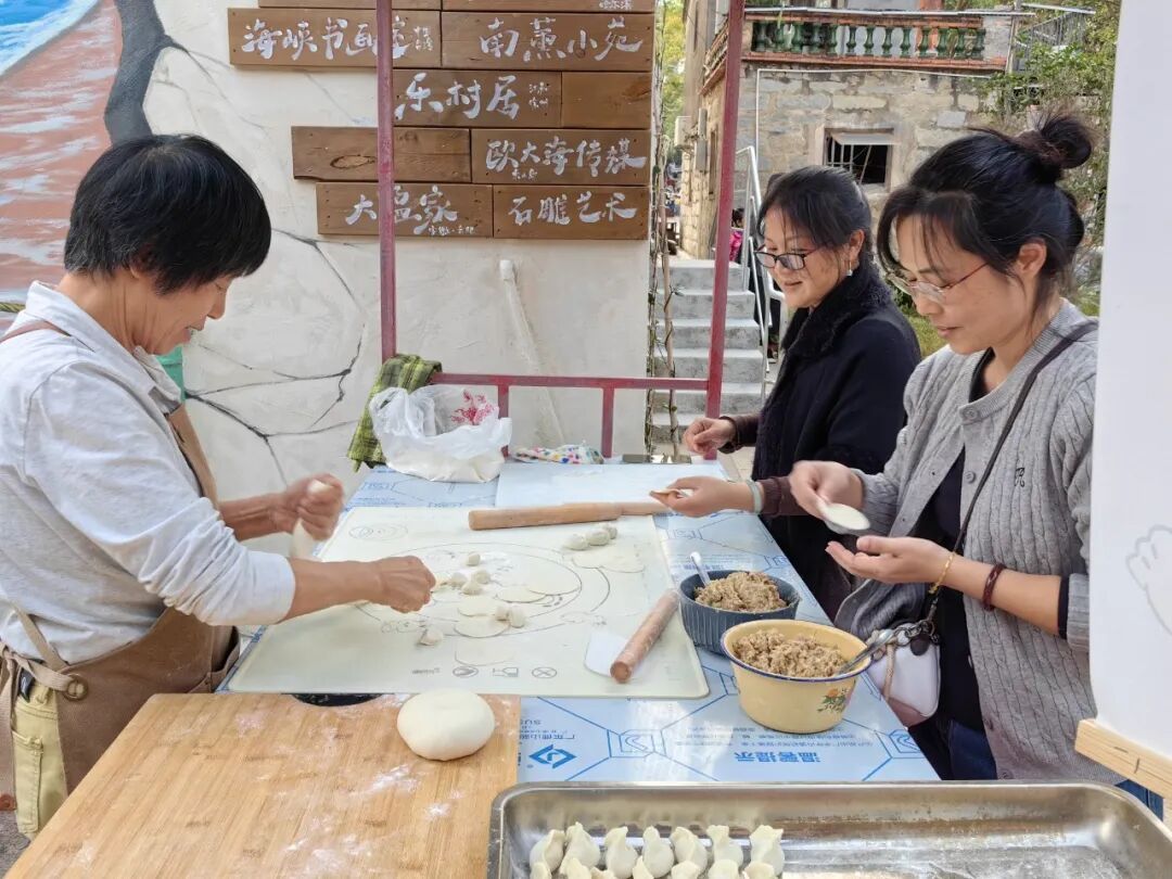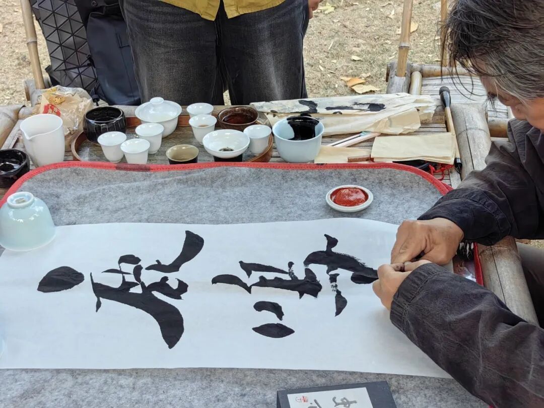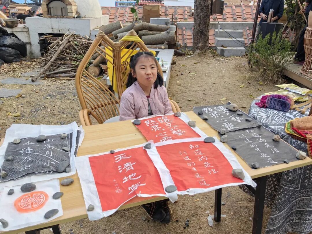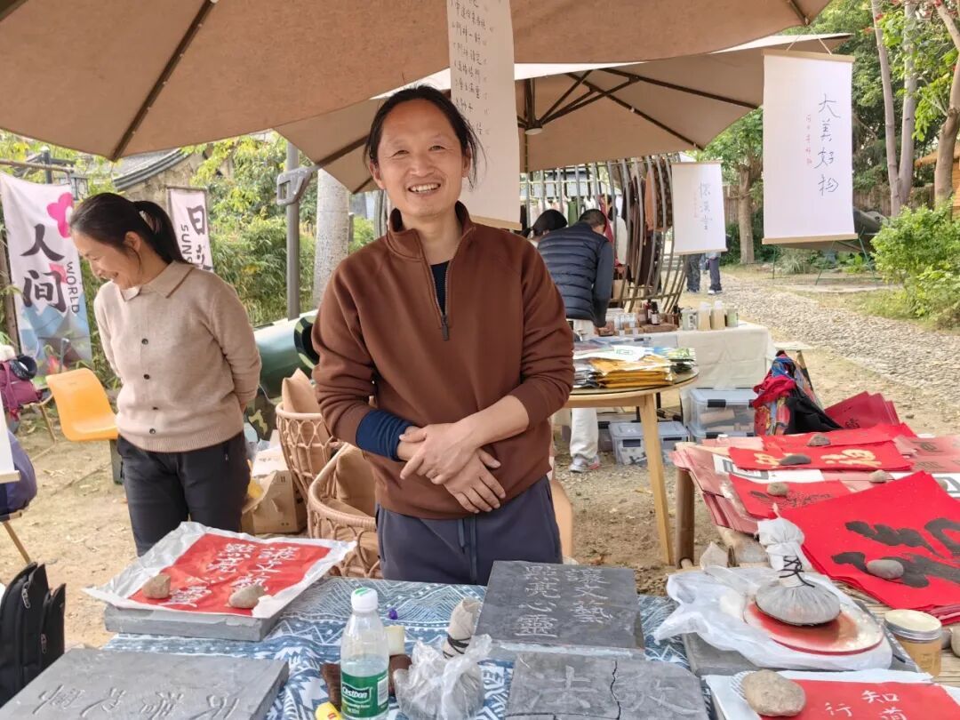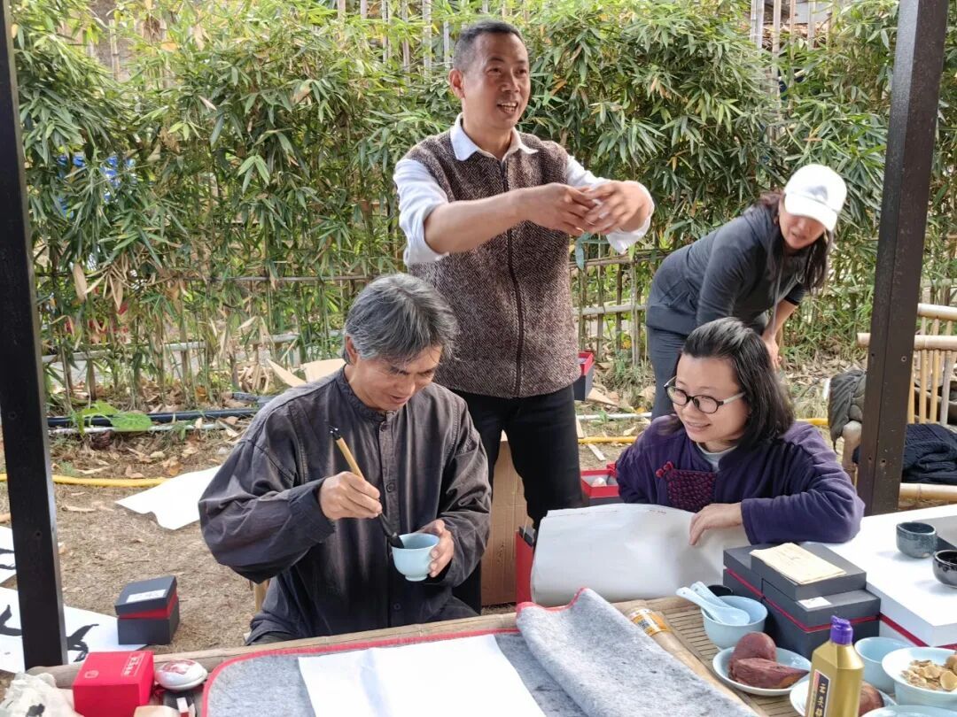 南埔村,从“大石记”到“谢谢里”,人来人往,路边墙上皆是漂亮的路标,指引人们在集市中集邮,吃、喝、玩、乐,好是热闹,祥和;大美茶碗、大美华服……大美的人们也都没闲着,摆起了摊位。院子里则是老师、同学们相互给对方画着脸谱,齐齐“变脸”变装。一切就绪,尾牙、雅集拉开了帷幕,觥筹交错,众宾欢也!吃饱后躲在角落,见大家举杯欢笑,老少同聚,乡邻无隔,我们大家将《诗经》般的生活呈现出来了!是“鹿鸣”!饭后,即各路神仙,各显神通之际,来自五湖四海的先生、老师们一同欢庆,皆有所长,便群龙共舞,吉!