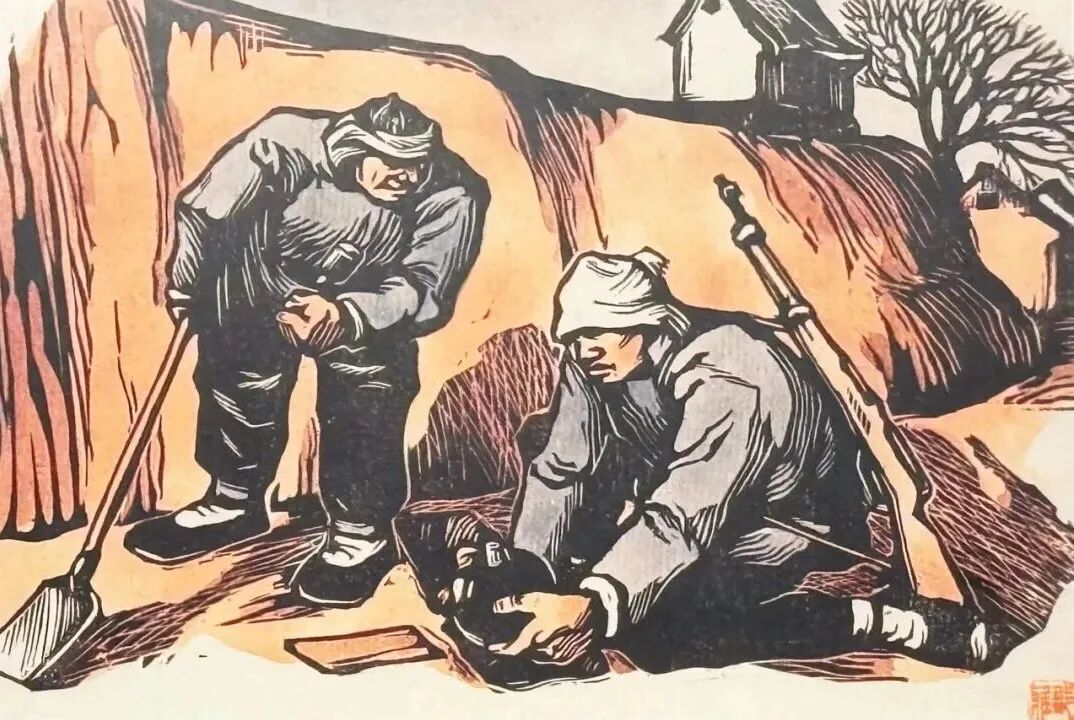 木刻版画《埋地雷》 (作者:邹雅 1939年)