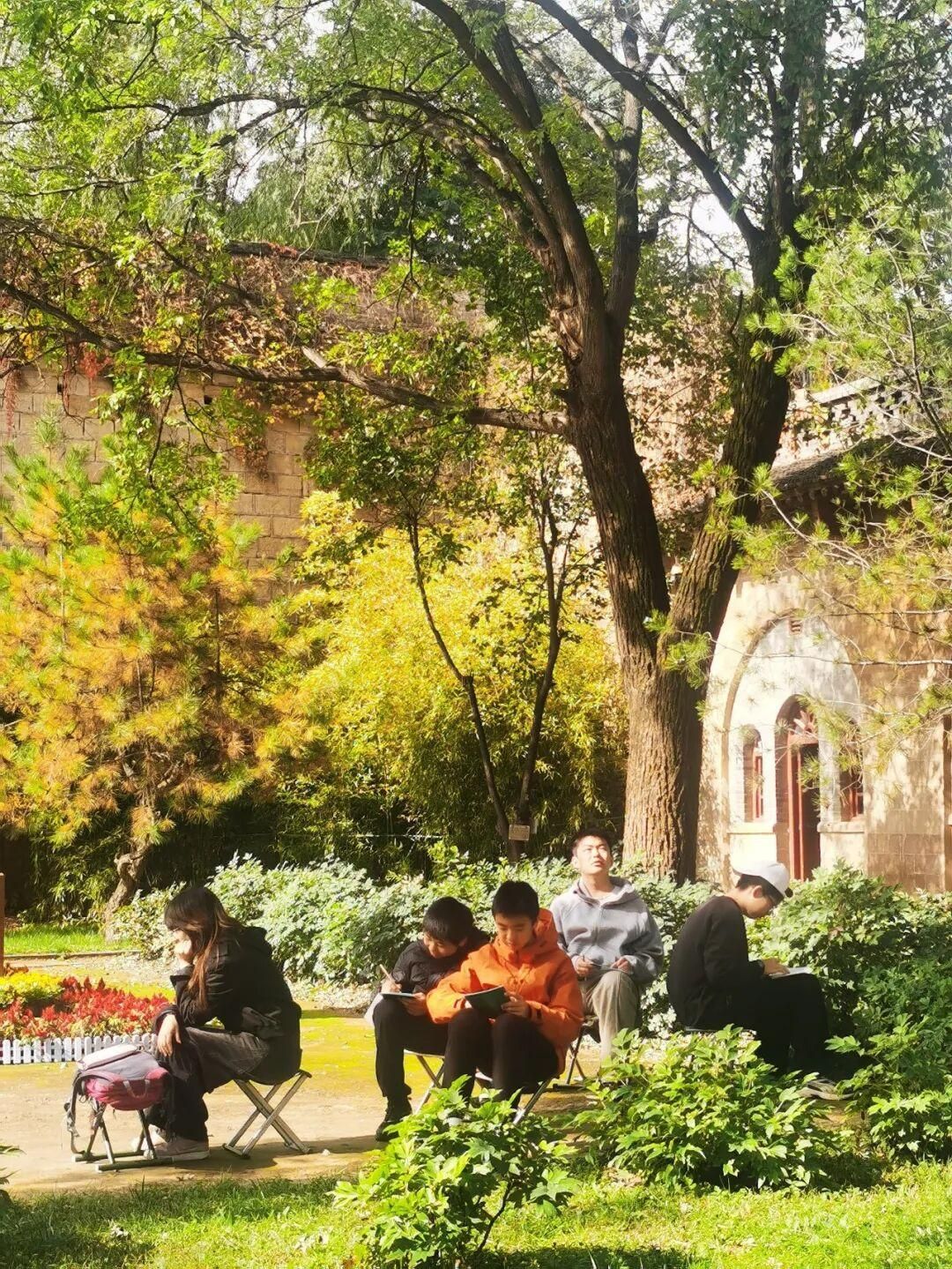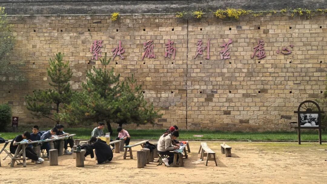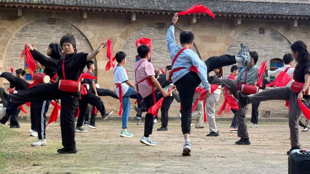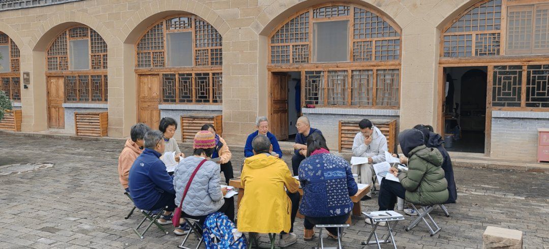 今日的经典传唱课,大家站在主席面前一同演唱《军民大生产》,很欢喜。大家坐在小马扎上一起唱歌,真像是当了回鲁艺的学生!下午,继续学习安塞腰鼓,很开心。
