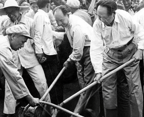 周恩来、刘少奇、朱德等在十三陵水库工地参加劳动