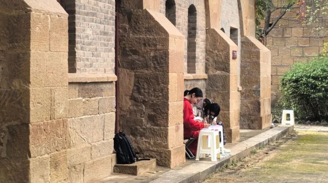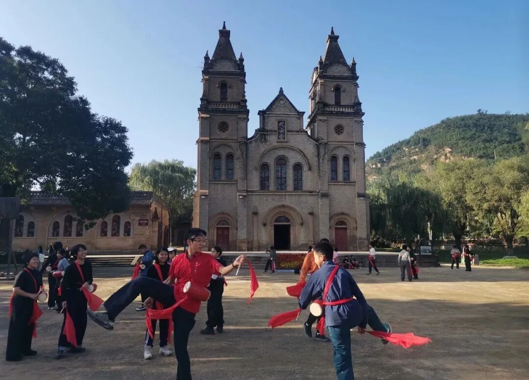 唱红歌,到天主堂门口,唱《黄河大合唱》。当时台下围了许多大爷大妈们,有位大爷看到了我们唱《北京的金山上》,就不自觉地唱了出来。不知为何,有些感动。