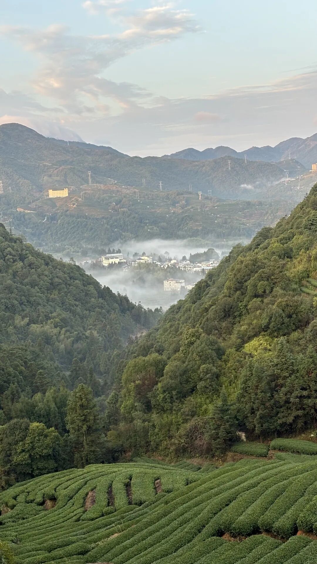 早晨五点半,被叫醒。晨练,走的还是前往寺庙的路。当走到半山腰,望向学校,处于一片云雾之中,若隐若现,太美了!