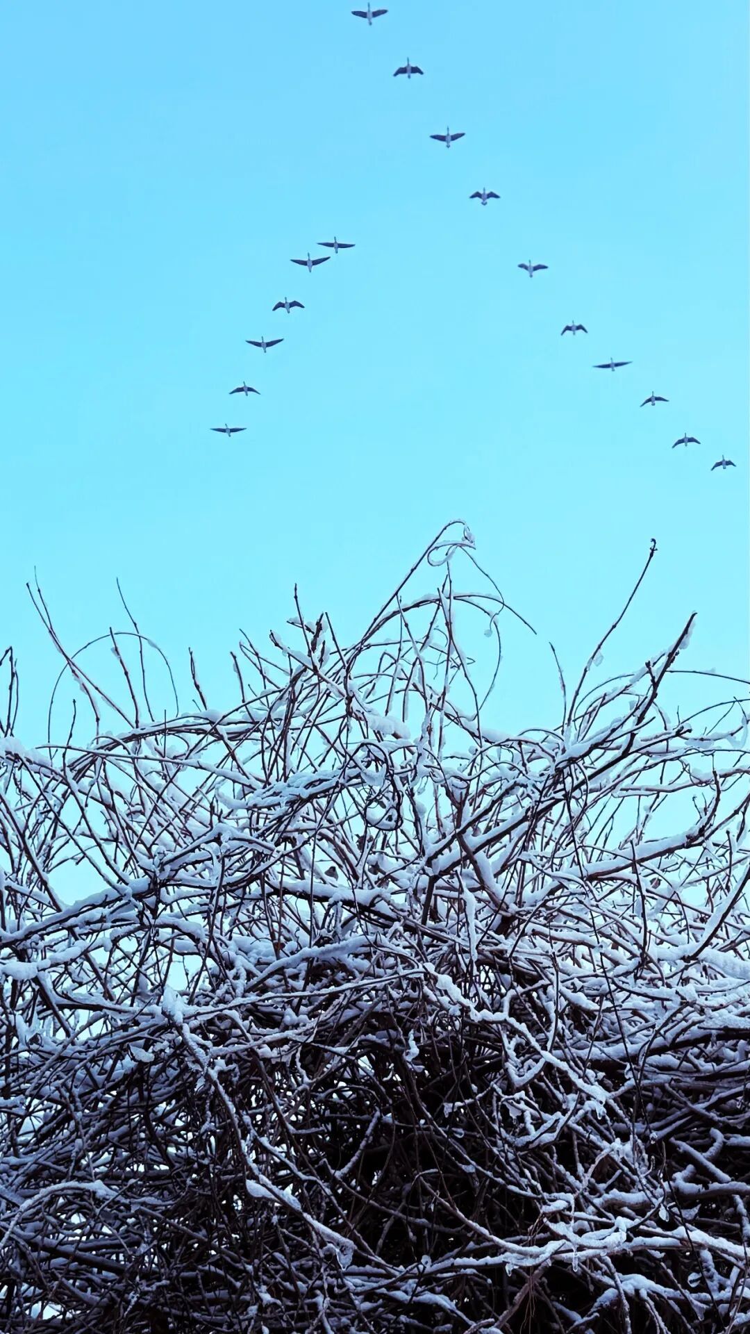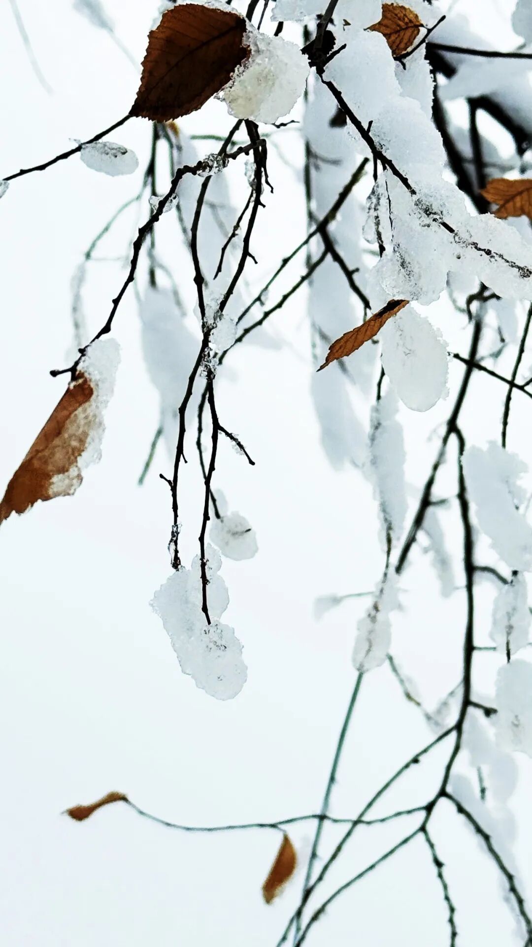 今天中午回来的时候,完全被这场雪迷住了。湖边的公园成了林海雪园。小径上,几乎没有行人。雪地都完好。我们几个向孩子似的奔跑着,欢舞着。特别喜欢一树一树的雪花,千姿百态,或呆萌、或苍劲、或妩媚。