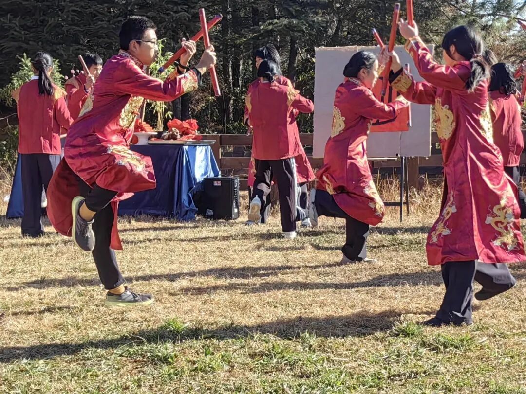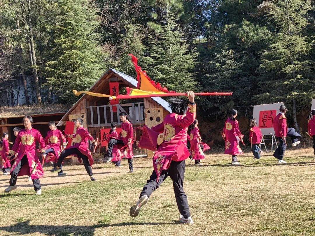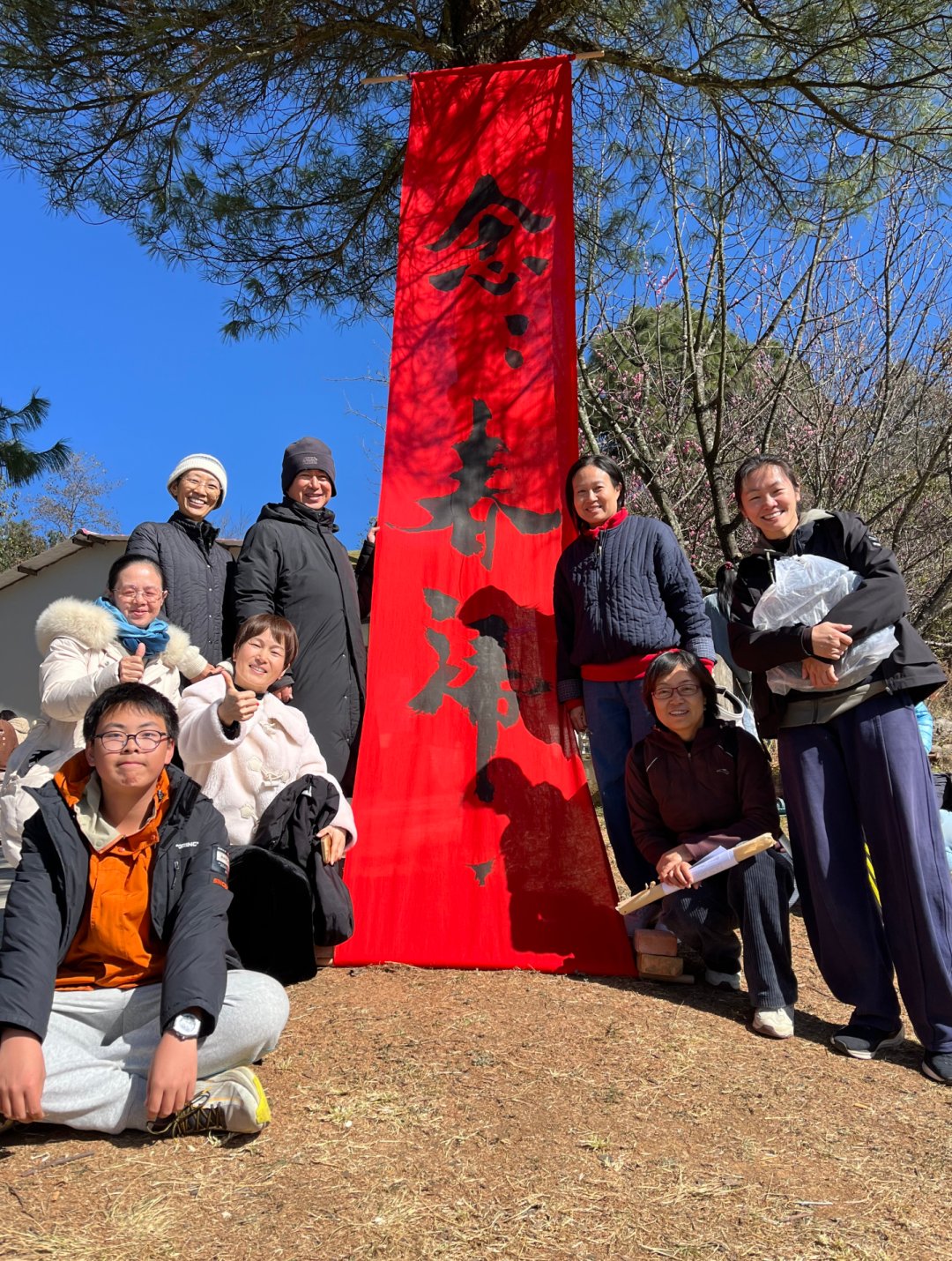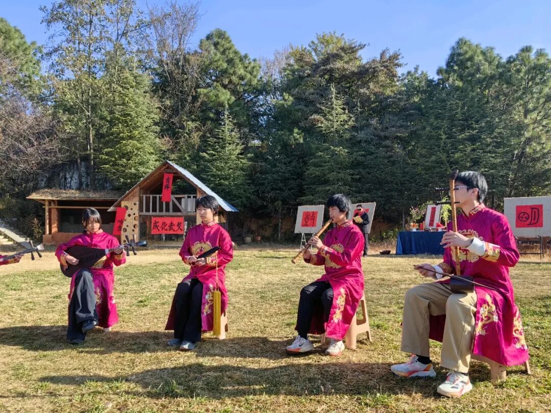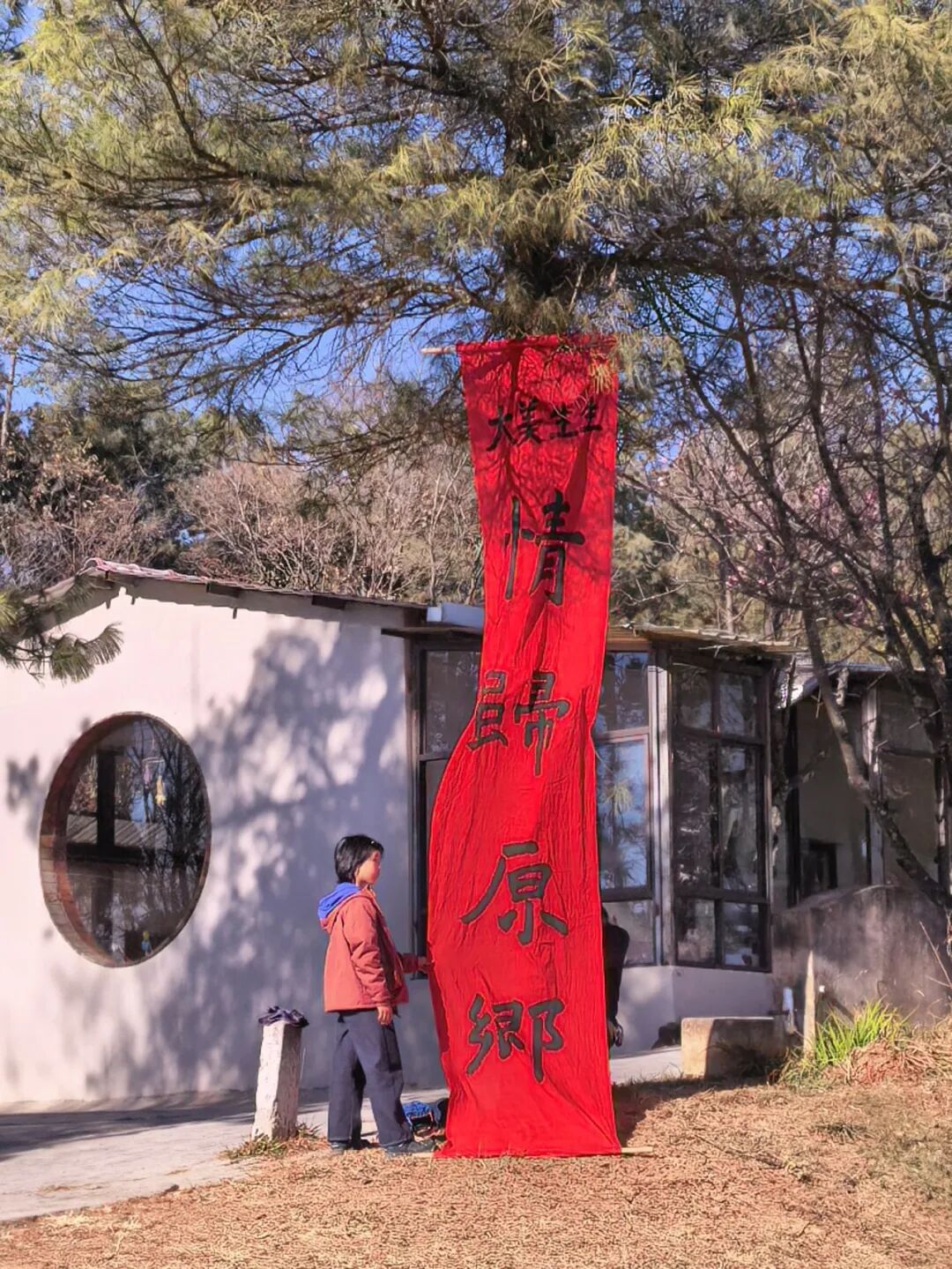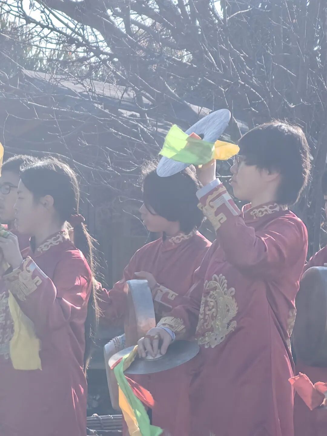 “大美礼乐,念念在春”。腊月初六,明心书院花树环伺的校园,张挂吉祥幡旗,老少师生,乡邻贤友,齐聚草坪,举行春祭大典。供桌上竹梅拱卫“天地圣亲师”之位,春气洋溢,俎豆馨香。吉时到,锣鼓锵锵,天地开张。书院主人焚香敬拜,致敬皇天后土、山川先贤。三酹春酒,酬谢天地圣贤。夸父班奏《圣寿乐》,吹笙鼓簧,德音孔昭。猎猎英歌,驱邪纳吉,侗歌入云,京韵悠长,最后全体齐唱《我和我的祖国》,酬勤报本,神人同庆,春祭礼成。