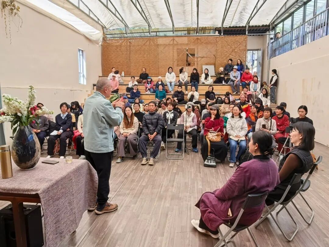 下午,黄明雨老师和书院老师座论当下教育困境,回应家长们的忧心之问。当家长讲述自己的孩子天赋一般,是不是可以晚一点上学时,黄老师当即清晰地辨明,什么才是真正的天赋:上天赋予每个人明德良知,这是绝对平等的天赋良知,这是凡圣不二的,千万不要说自己的孩子天赋一般。而肯定每个人的天赋明德,正是我们中华文明对于世界的卓然贡献。落实到孩子的教育,怎么去除家长普遍的焦虑,具体怎么做?黄老师娓娓道出自己为女儿创办学校,陪伴一群孩童长成少年,陪伴青春期孩子的经历。他讲到班级一个孩子厌学,而爸爸不能放下工作陪伴孩子走进广阔天地,于是自己代替爸爸们,每年陪伴孩子千里徒步。“千里徒步走完,孩子们的眼睛都亮了,自信洋溢。每一步都是自己走出来的,只要方向是对的,终究会抵达目的,这一点,给了孩子极大的自信和勇气。”一个走过了八千公里、陪伴青春期孩子十年,同吃同住,一步不少走的同道人,说“只要走对了路,教育是简单的呀”,看似风轻云淡,台下的同仁们已经双目泪湿。