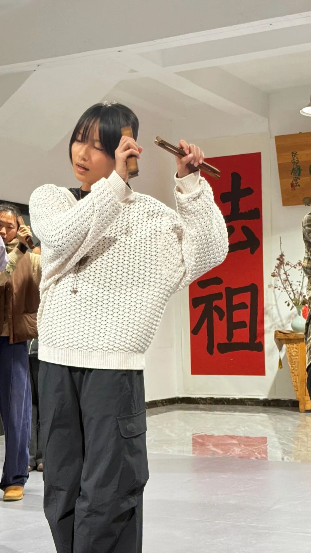 第一次见建瑜老师是在北京顺义咸恒文化园。风雅斋的几位老师受邀到北京有小型演出,也顺便来咸恒办一次雅集,让我们开开眼。那时我们从辛庄刚搬到顺义,空荡荡的多功能厅还没来得及有任何布置,东瀚老师现场写了一个横幅,贴在舞台上面,朴素得有点延安鲁艺剧场的感觉。