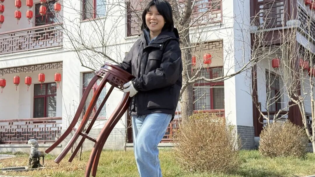 同事们拍了一张我和丁老师搬案几的照片,当然,这个不显丁老师的水平,案几不重。从这张照片中,他们发现我搬得很轻松,脚步带风似的轻快,还笑盈盈的。旁人以为是摆个样子照张相。哈哈哈!其实,是得益于丁老师的担待与引领。